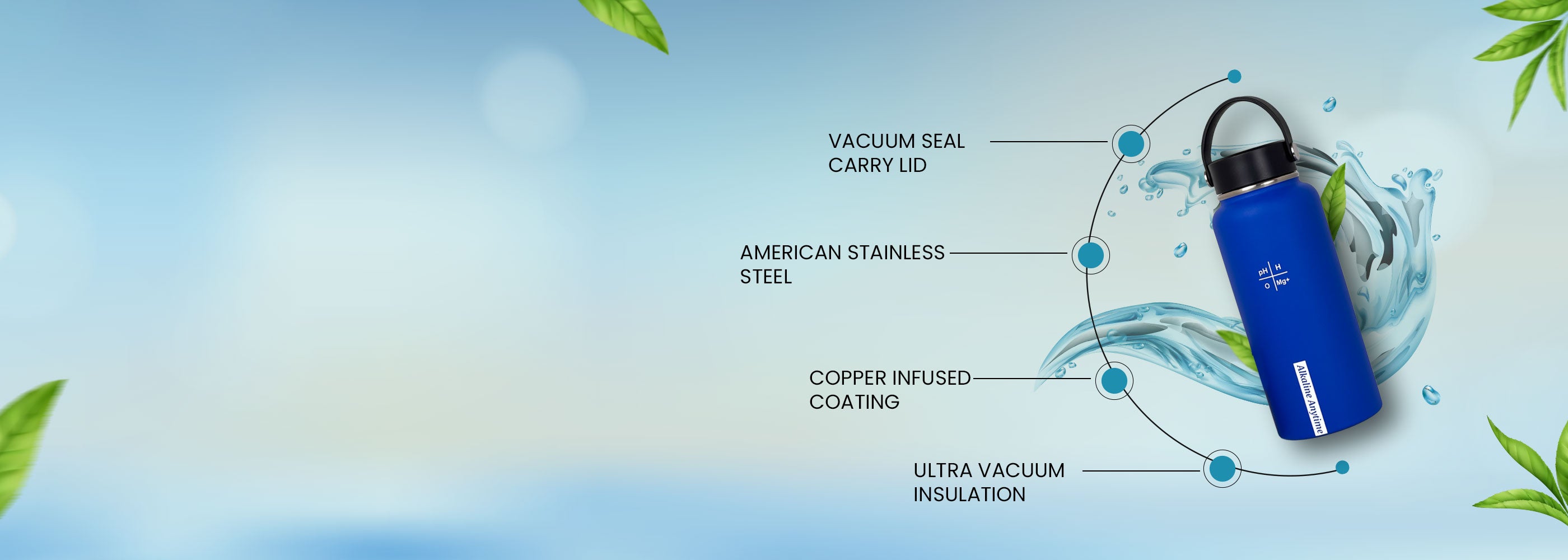 Alkaline Anytime Alkaline Water Bottle Flask-1 Alkaline Filter-2 Lids-LED Lid & Stainless Steel Lid