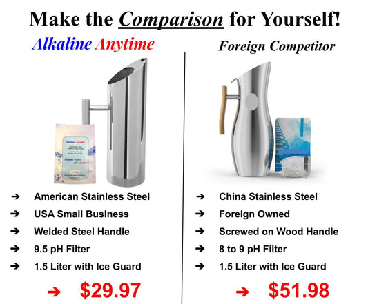 Alkaline Anytime Stainless Steel Water Pitcher with Alkaline Water Filter